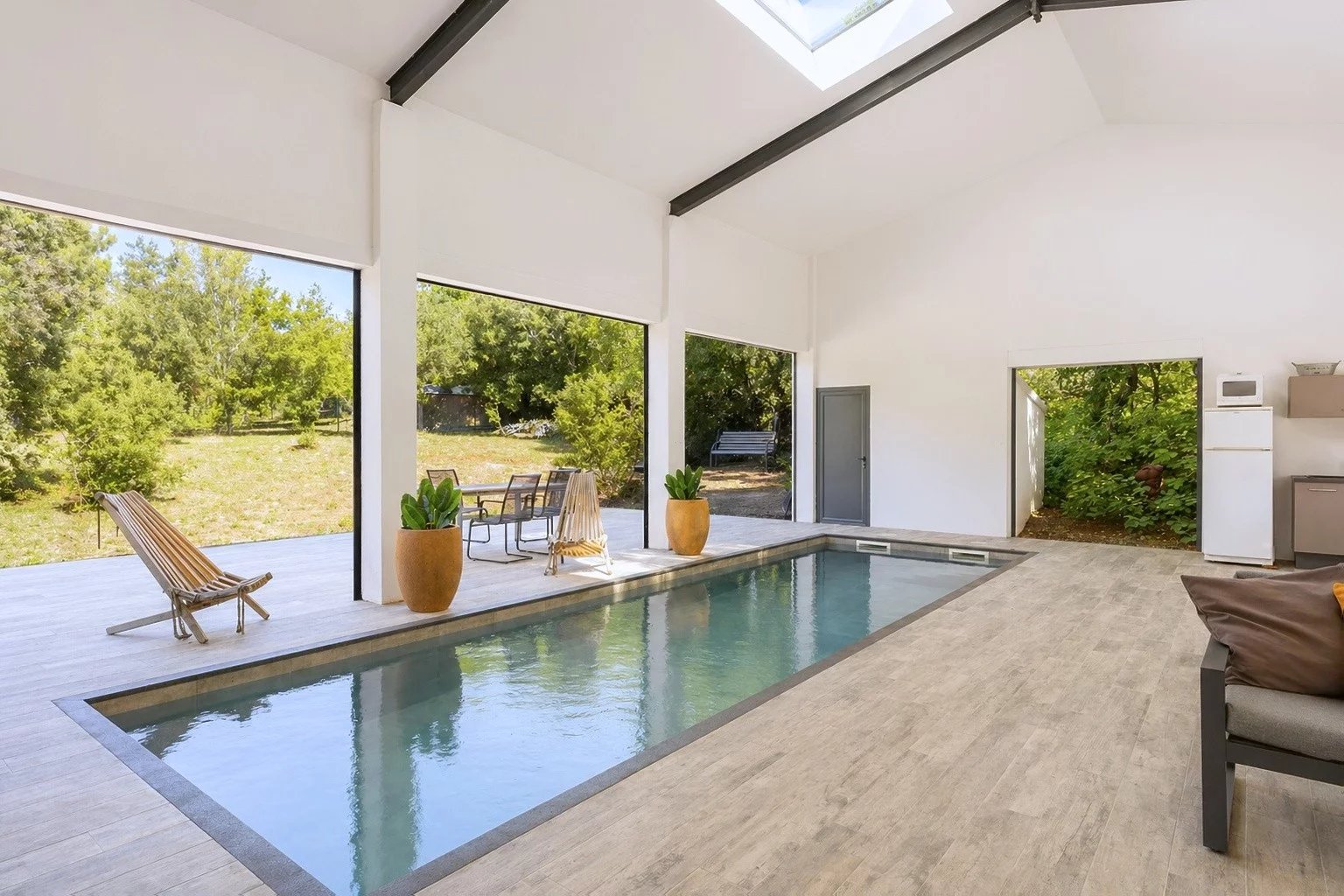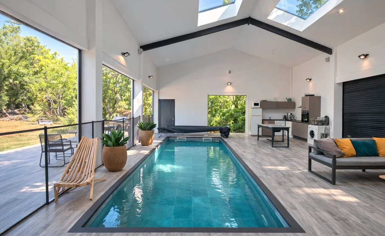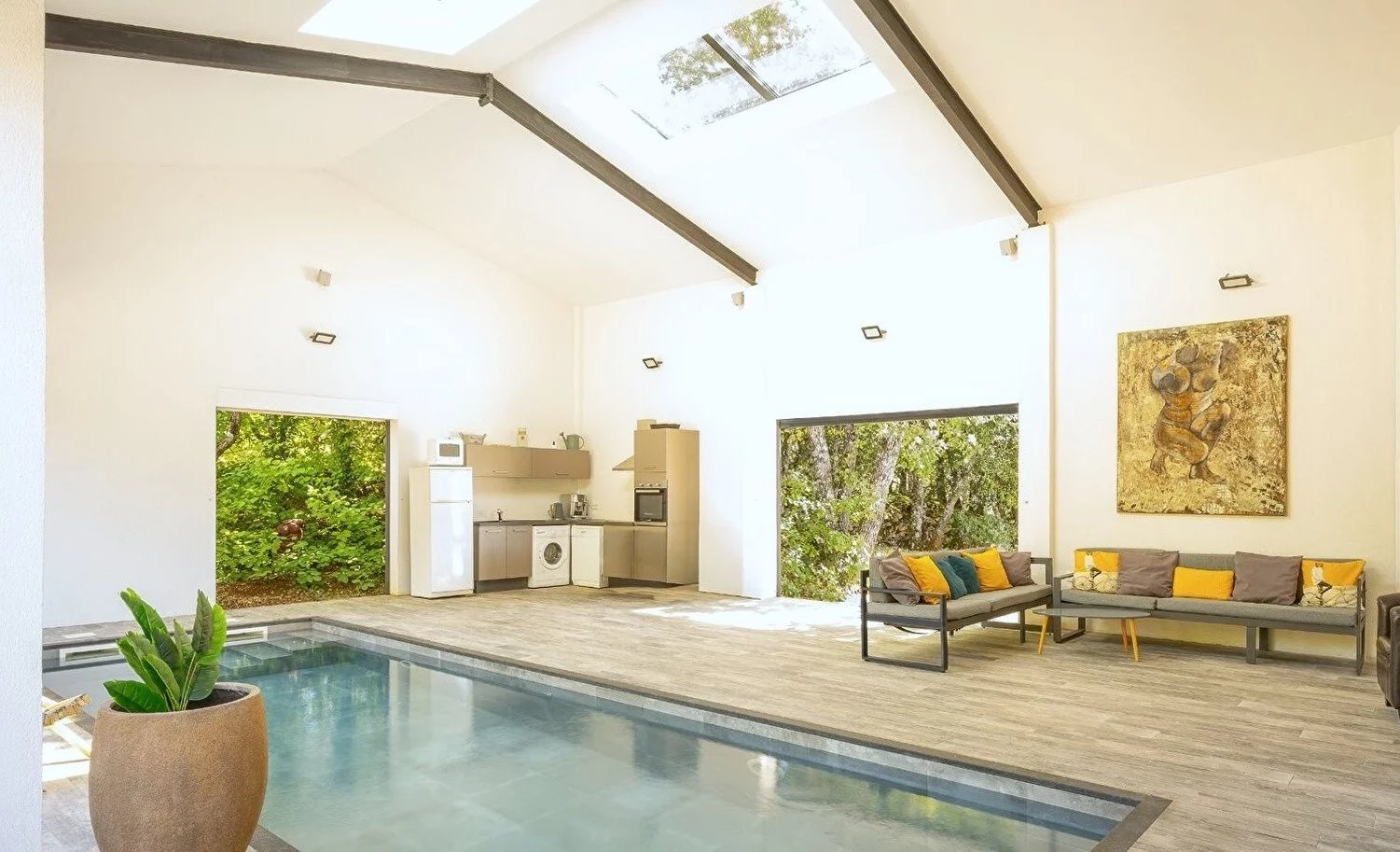 L’espace "Loft" & Piscine : Une magnifique structure métallique de 80 m² abrite une piscine intérieure avec nage à contre-courant, véritable trait d'union entre intérieur et extérieur.