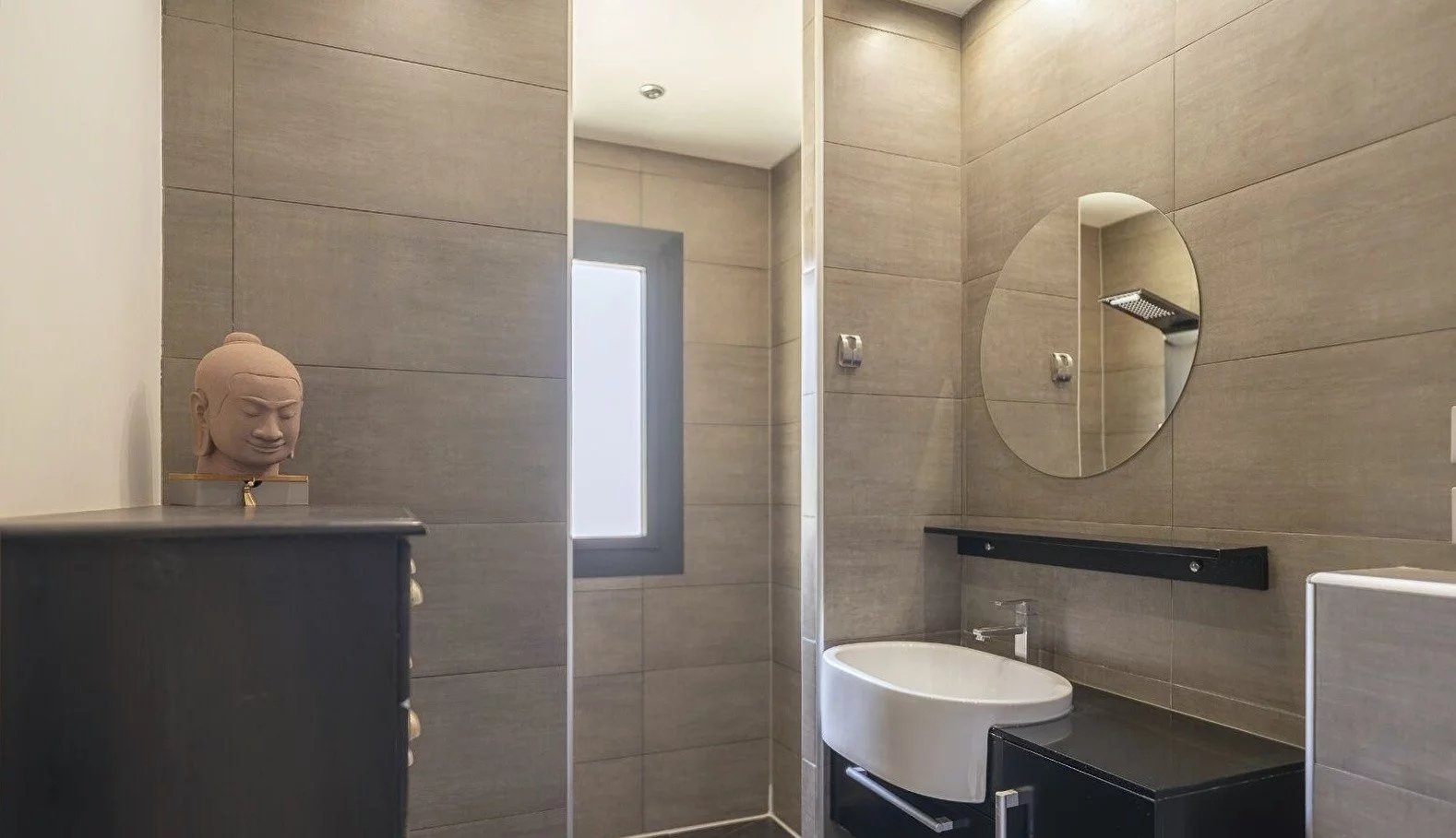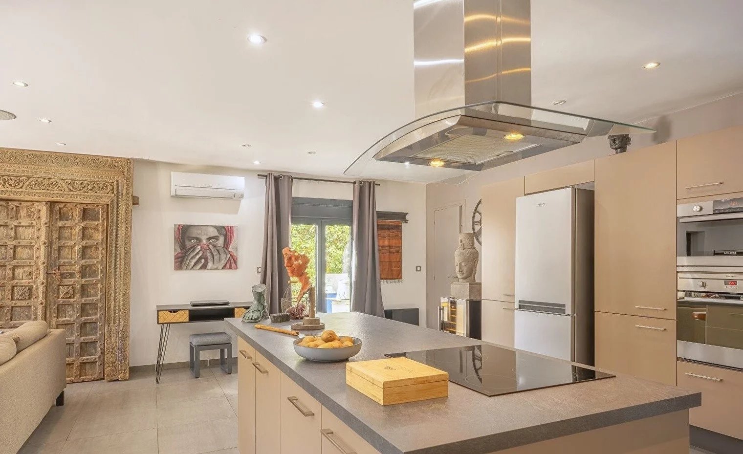 La demeure principale: un vaste séjour baigné de lumière avec cuisine ouverte, pensé pour la convivialité. Elle dispose de 5 chambres, dont une suite parentale prestigieuse bénéficiant d'un accès direct à l'espace bien-être.